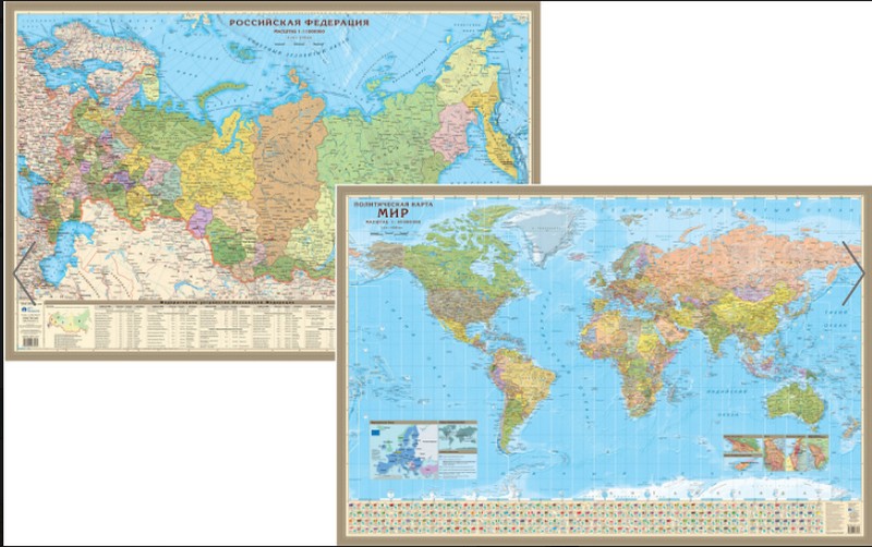 Двухсторонняя карта Мира (45М) и России (11М) с отвесами