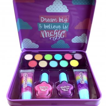 Комплект детской декоративной косметики Martinelia «Мечты Единорога» изготовлен из гипоаллергенных материалов, абсолютно безопасен для детей. Упакован в удобный металлический кейс с замочком.