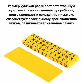 Пособие содержит кассу букв из 36 кубиков и Тренажер для письма. Умные кубики для обучения английскому алфавиту и чтению, а также математике. Тренажер для письма для тренировки в написании букв английского алфавита.