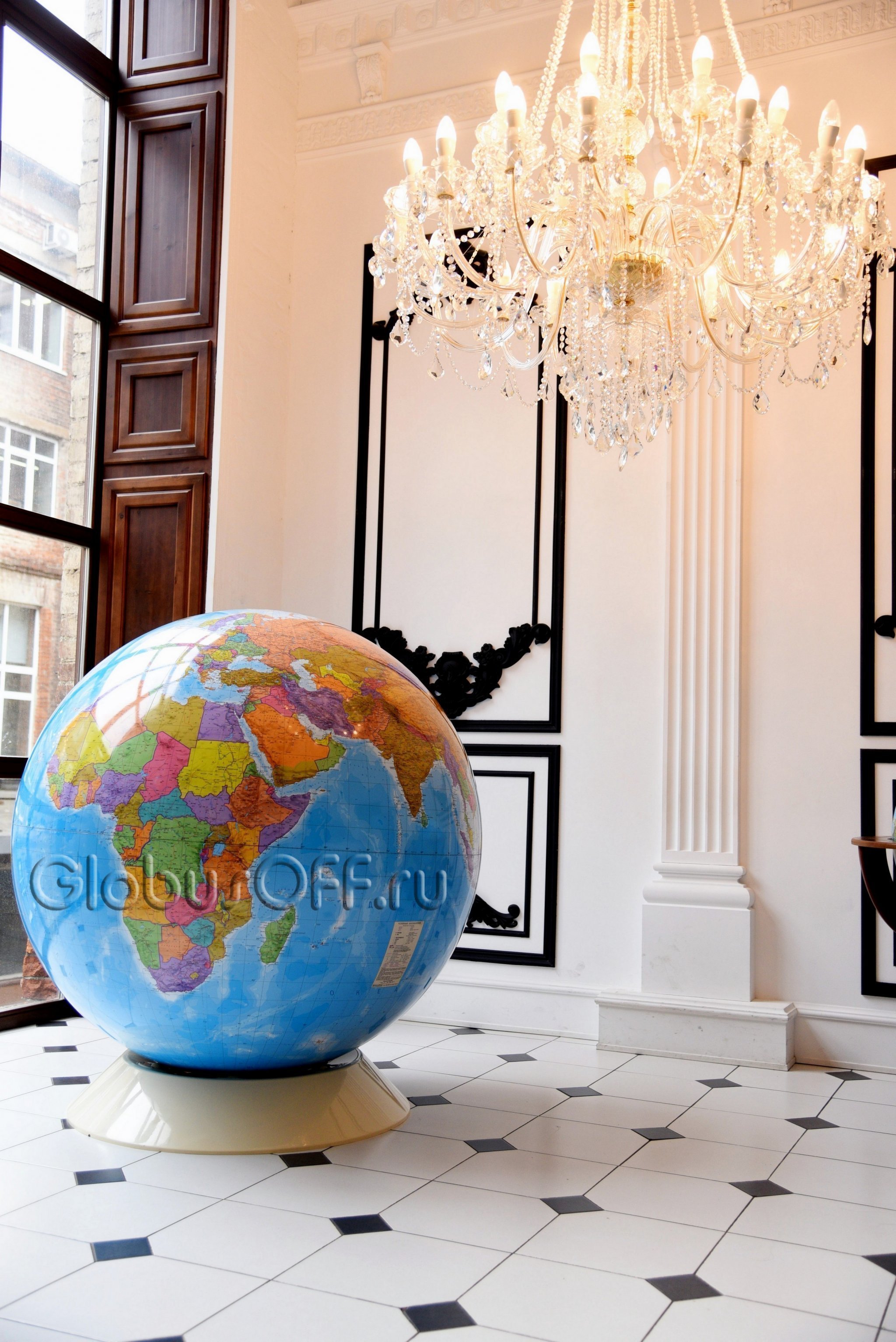 Политический глобус диаметром 130 см выглядит презентабельно и солидно, идеально подходит для больших офисов, приемных, вестибюлей.