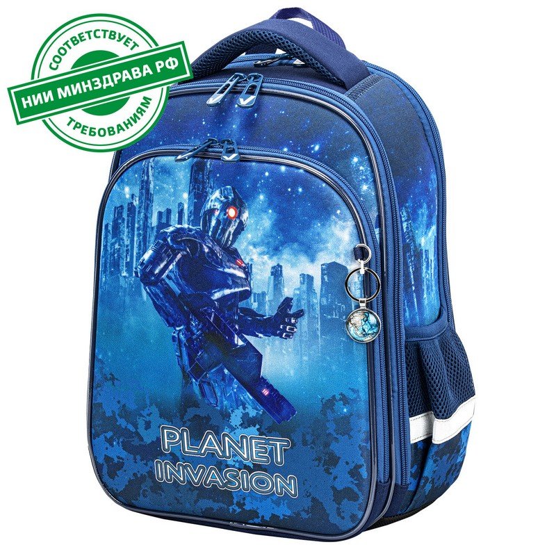 Ранец упакован в плотный ПЭТ пакет с замком Zip Lock и ручками, который сохранит качество и товарный вид при хранении и транспортировке.
