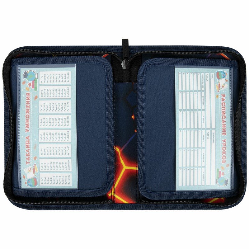 Пенал имеет стандартный размер 21х14 см, что позволяет легко размещать его в ранце или рюкзаке, сумке. Хорошая наполняемость пенала дает возможность держать все необходимые для уроков канцтовары в порядке, в одном месте. Внутри пенала имеются вкладыши для расписания уроков и с таблицей умножения.