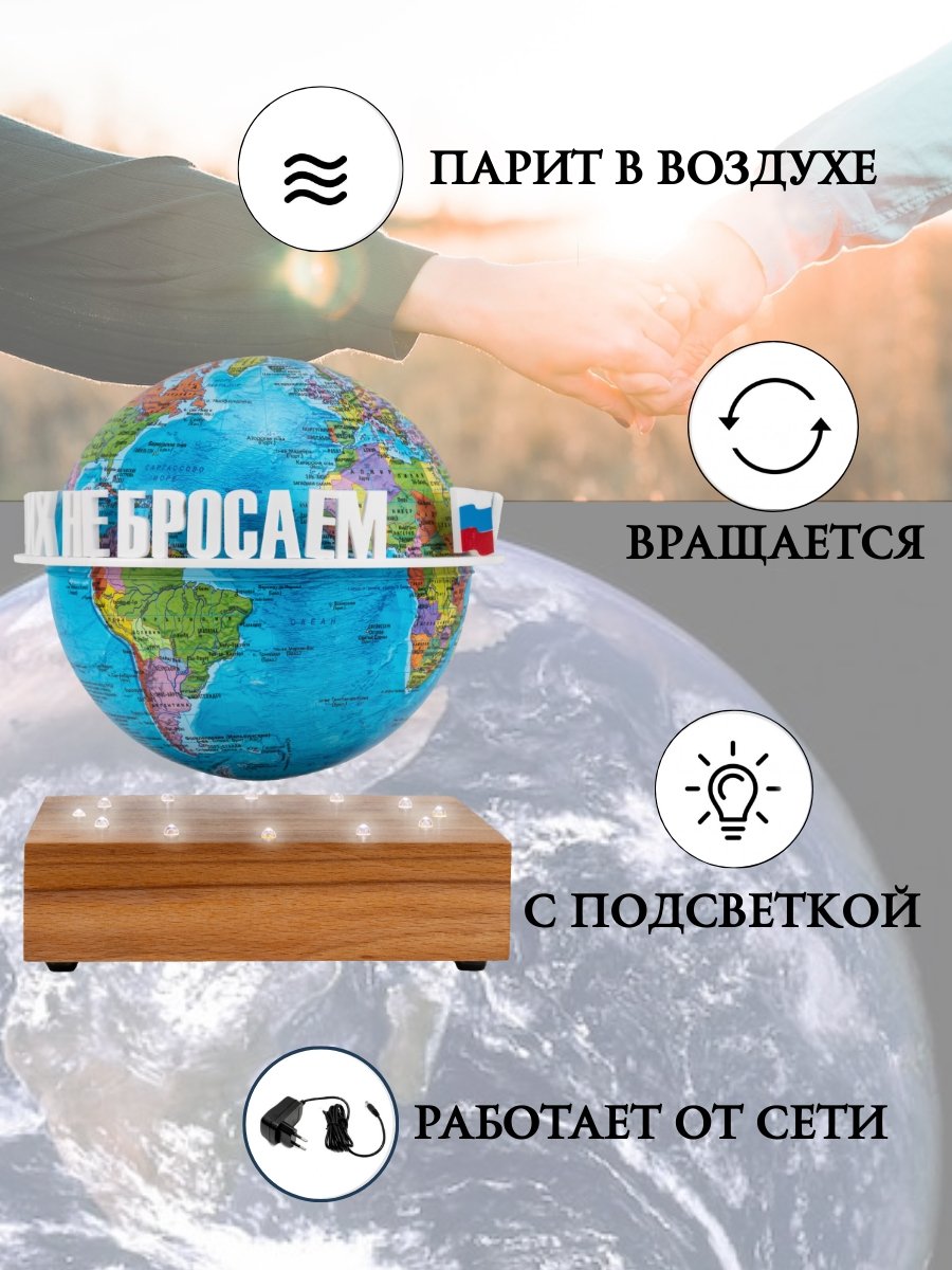 Левитирующий глобус Политика D=15 см "Своих не бросаем"– стильный и функциональный аксессуар для вашего дома или офиса. Этот уникальный глобус не просто украсит интерьер, но и станет объектом восхищения ваших гостей благодаря своей инновационной технологии левитации.