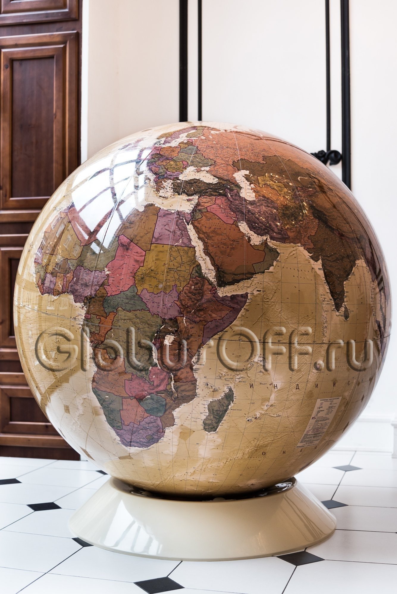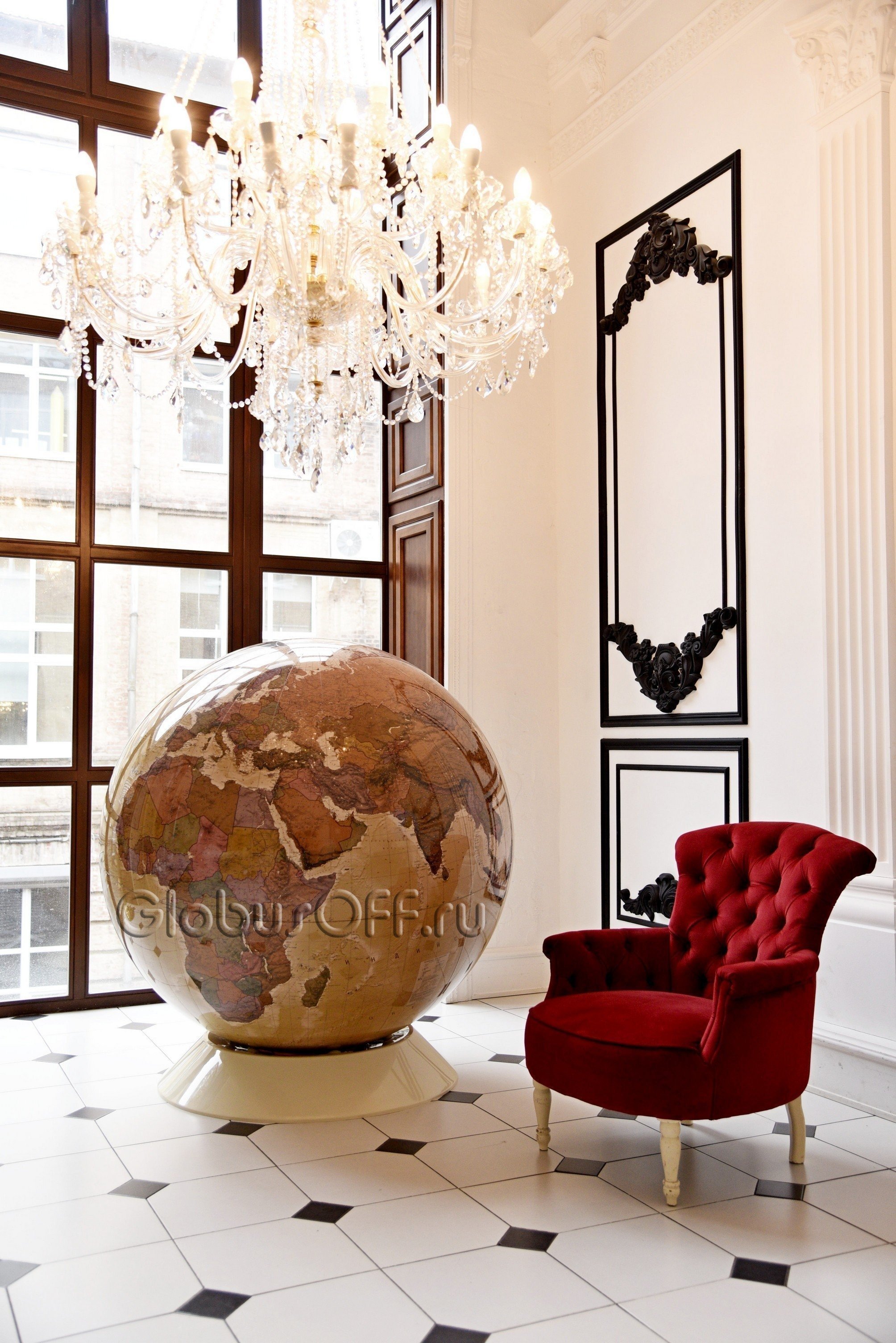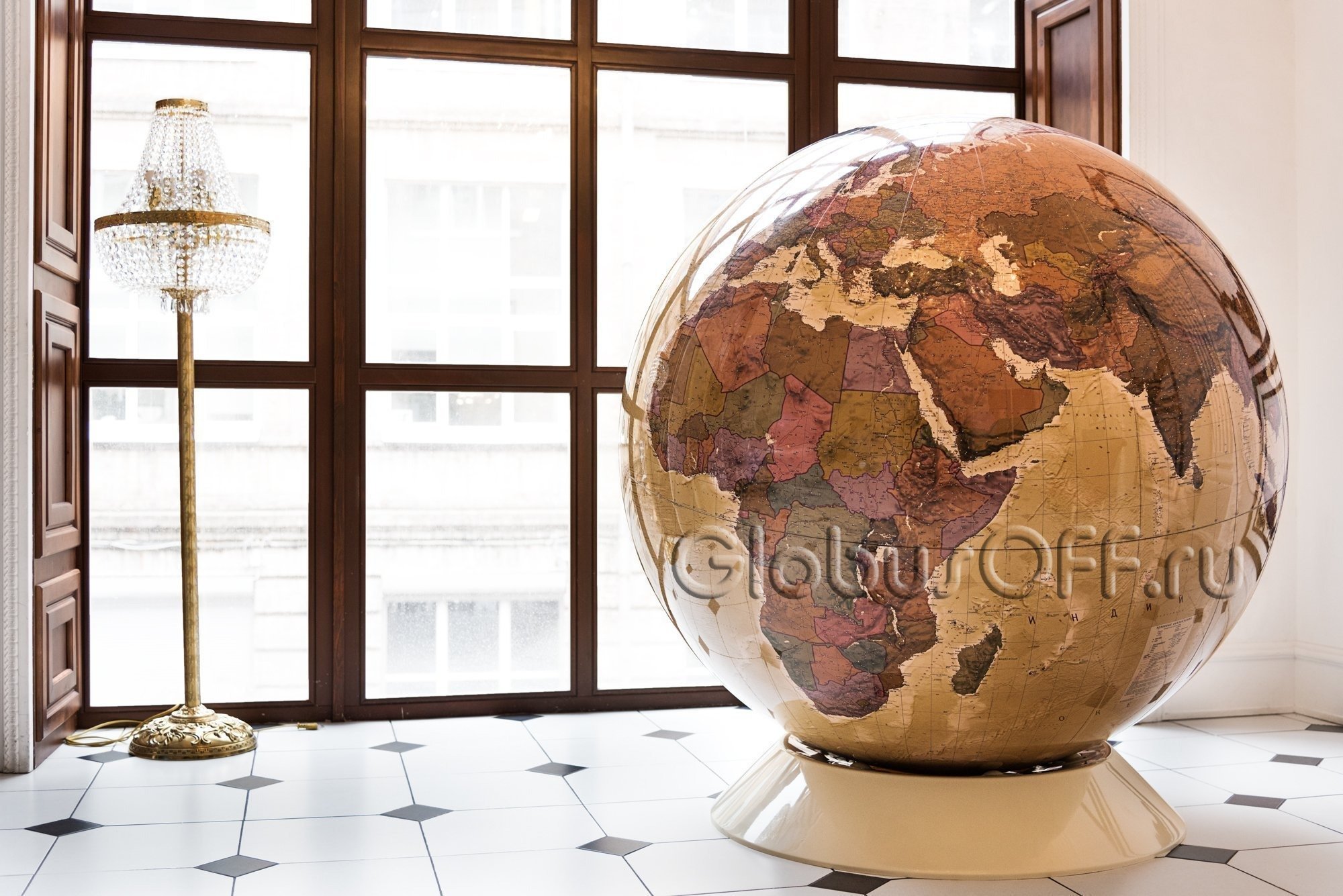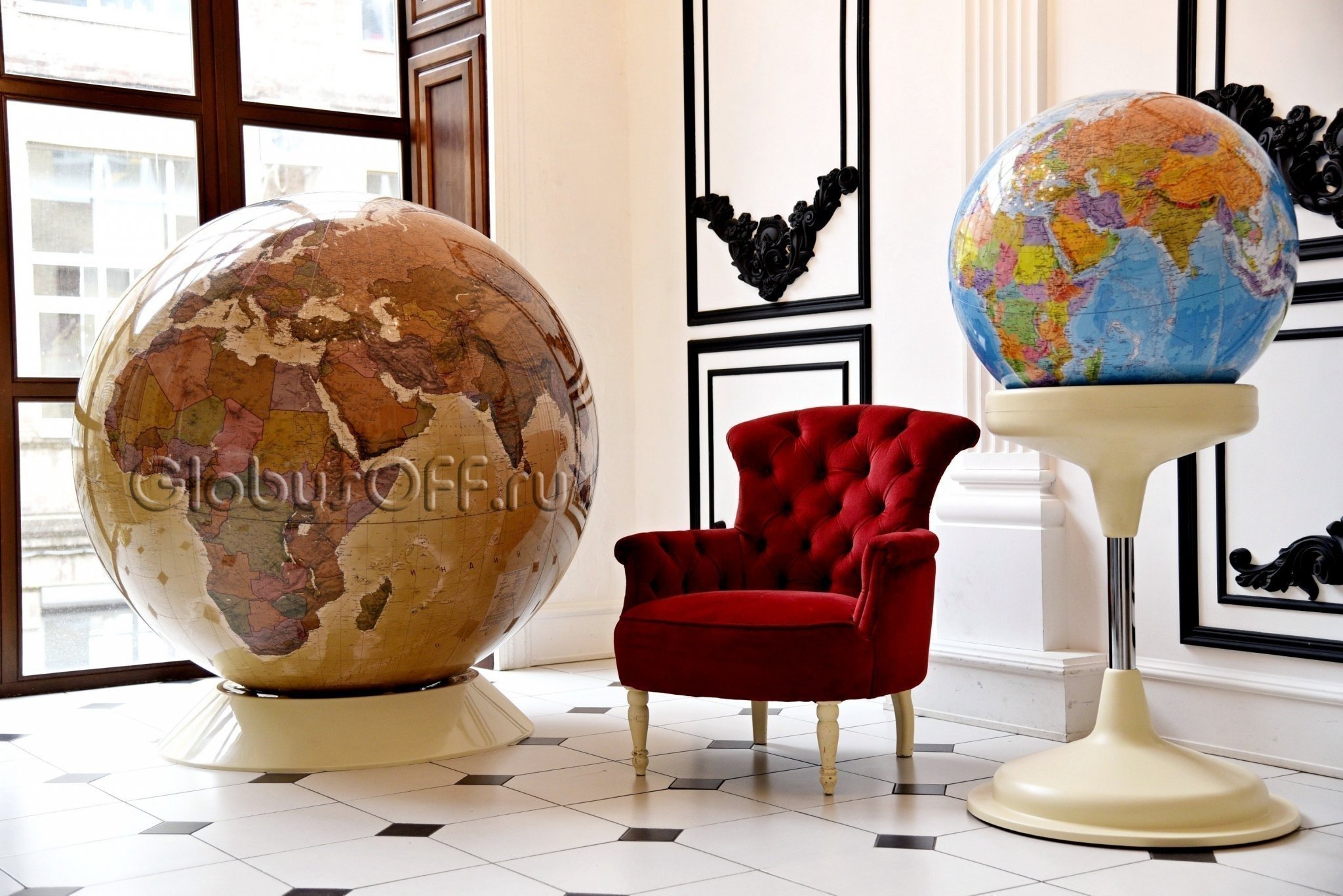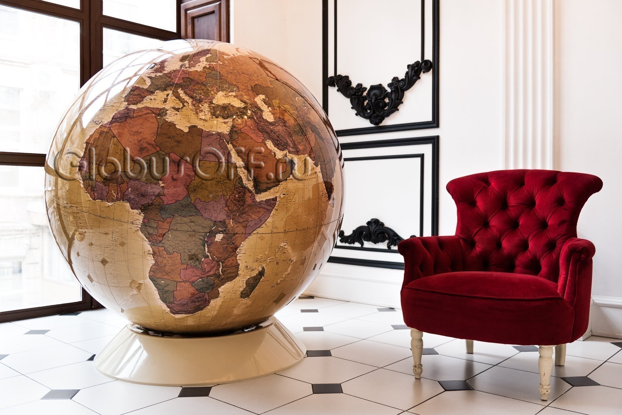 Большой глобус в стиле ретро выглядит внушительно и респектабельно. Такой глобус отлично впишется в интерьер помещений, оформленных в классическом стиле или с дизайном под старину.