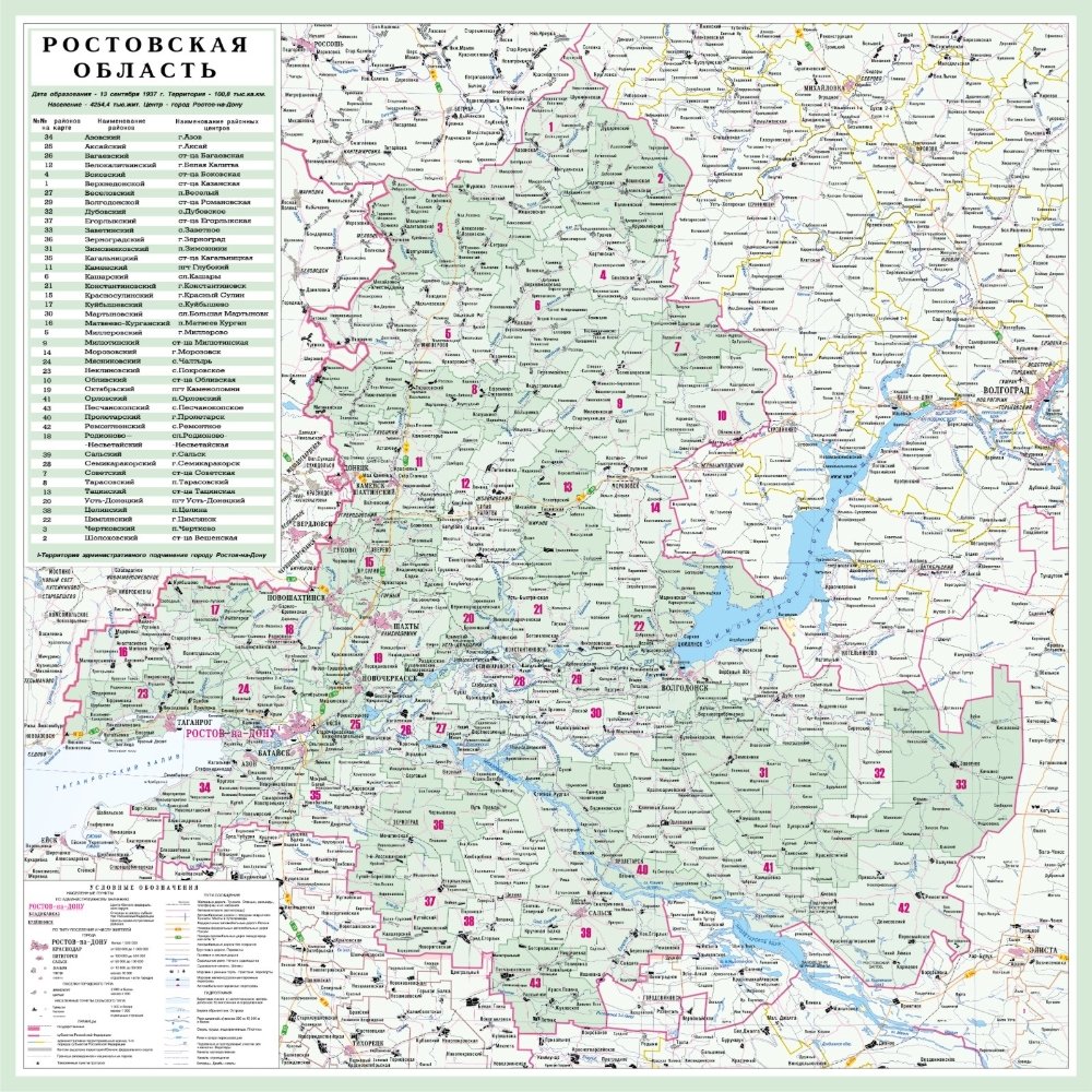 Настенная карта Ростовской области 150x150 см (ламинированная).