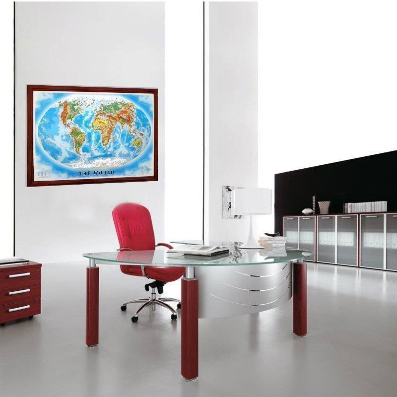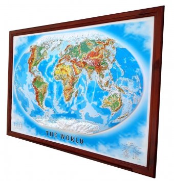 Рельефная карта "МИР" в деревянной раме, 112*80 см
