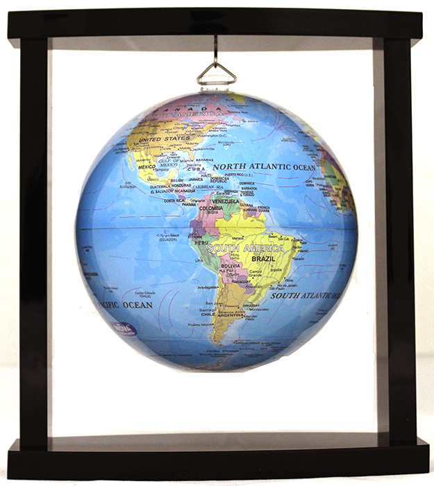 Глобус изготовлен из двух сфер. Внутренняя, с изображением самой планеты, ее рек, гор, материков и океанов, плавает в специальной жидкости. Две сферы создают особое магнитное поле, и Земля вращается в постоянном режиме под действием солнечных лучей. На глобусе изображена современная политическая карта мира, с указанием границ и столиц государств, а также главных географических объектов.