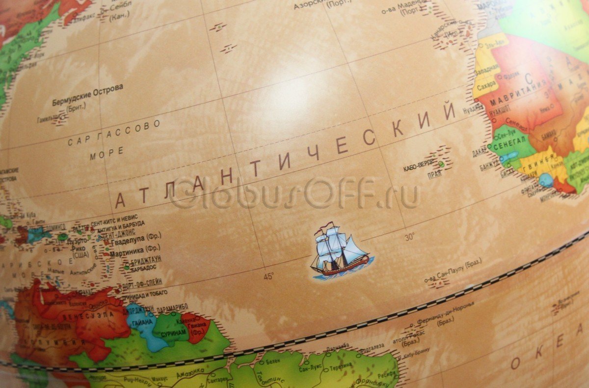 Если вы цените вещи стильные, необычные, то полностью функциональный глобус с современной картой мира, оформленный под старину наверняка вам придется по душе. Без сомнения, понравятся и особо яркие краски, которыми выделены государства - резкий контраст тонов делает изделие нарядным и необычным.